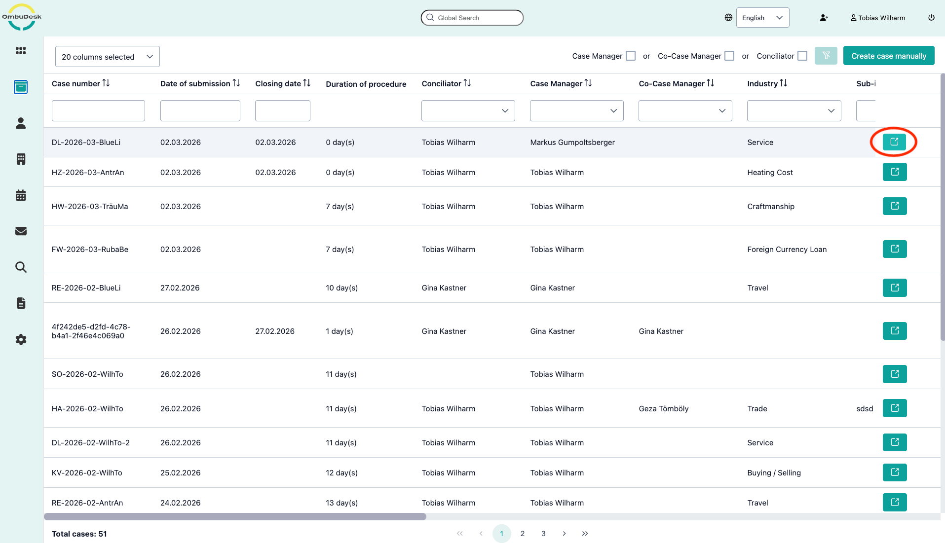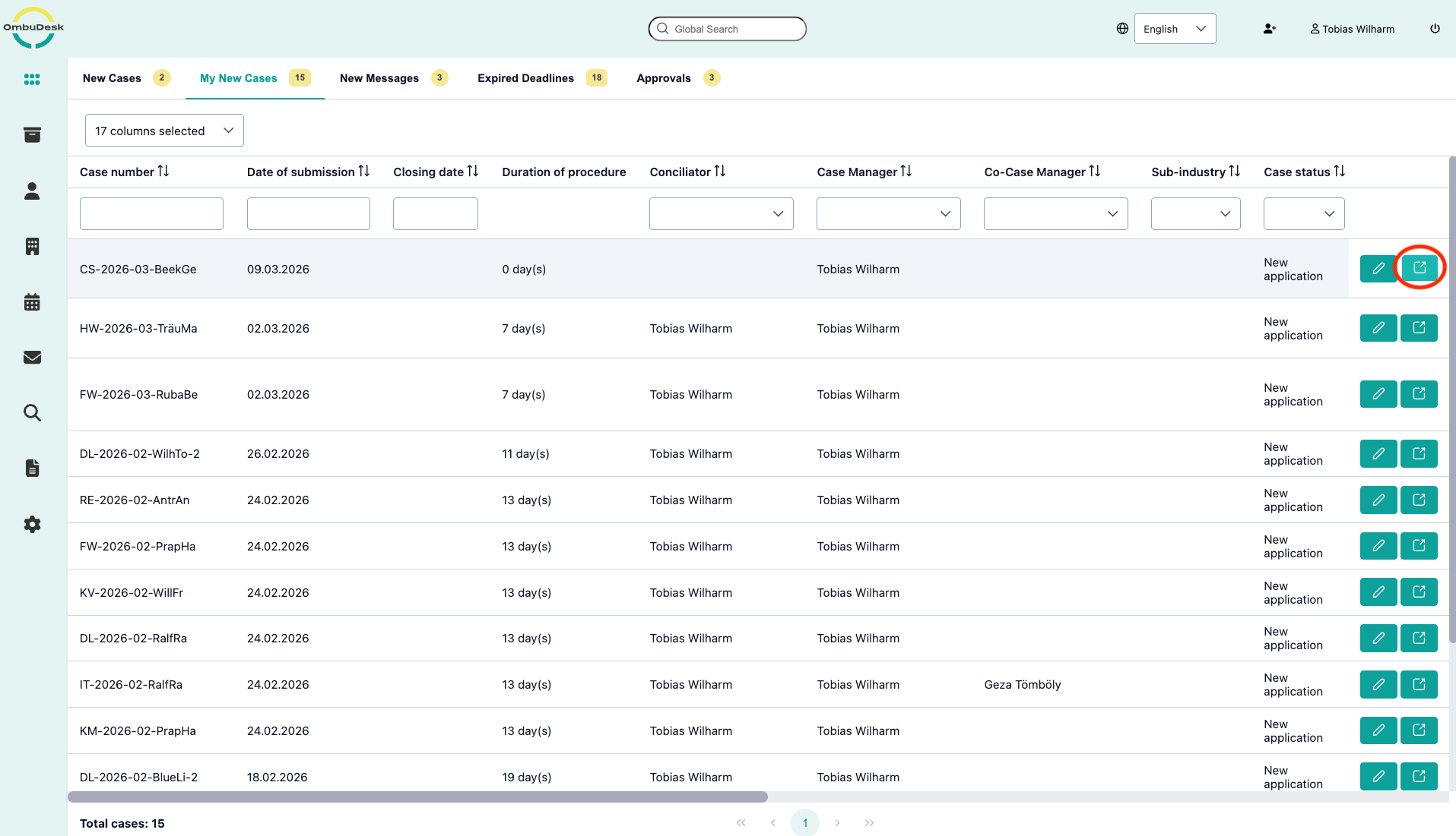 All complaints assigned to a respondent are listed in their detailed view. From there, you can navigate directly to the respective complaint. It is also possible to search for and filter respondents.