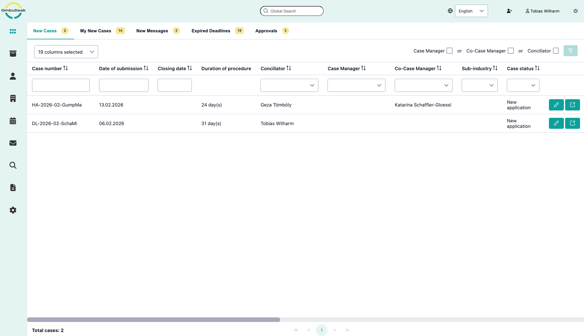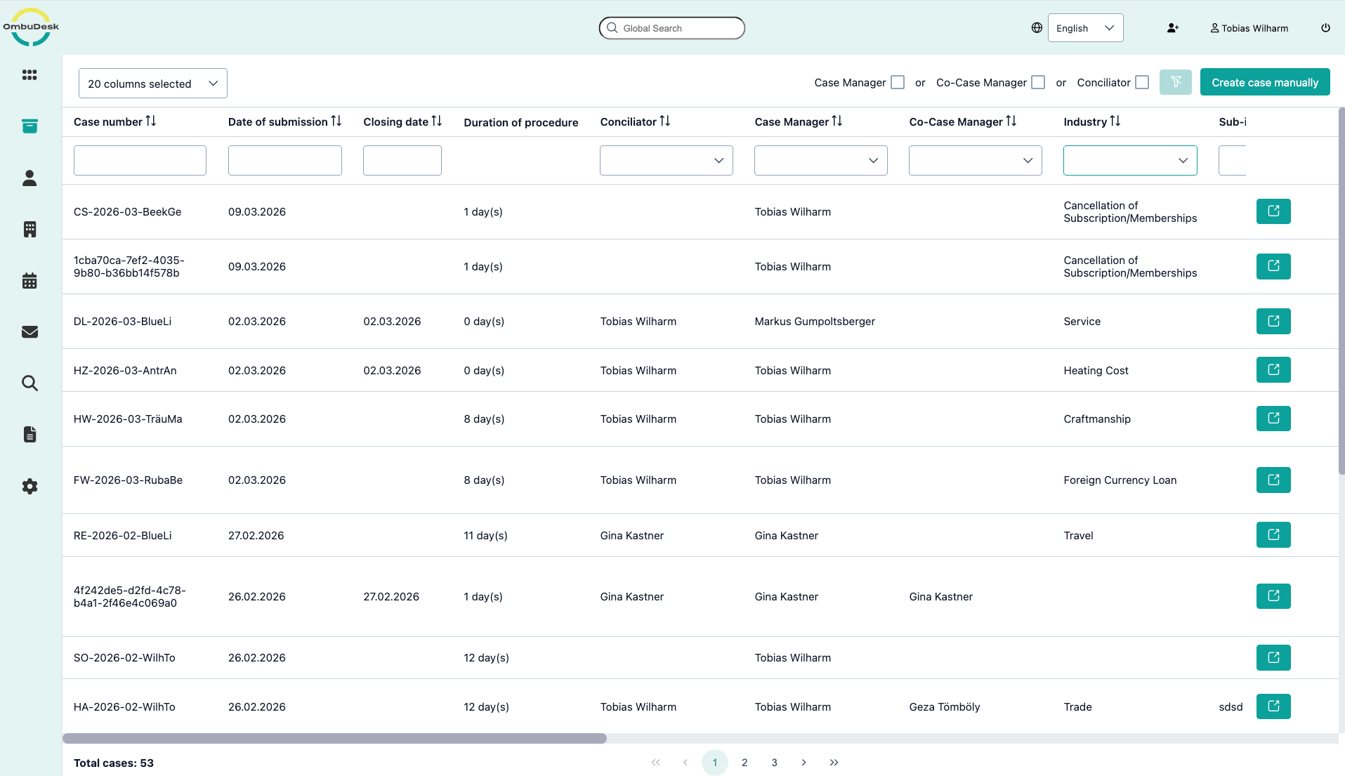 Users of modern applications are accustomed to lightning-fast searches à la Google & Co. OmbuDesk takes this into account by integrating a search engine that can search through very large quantities of complaints in a fraction of a second using a full-text search. The search engine also tolerates typos. This allows you to efficiently search through old complaints for any terms, complainants, documents and notes.
