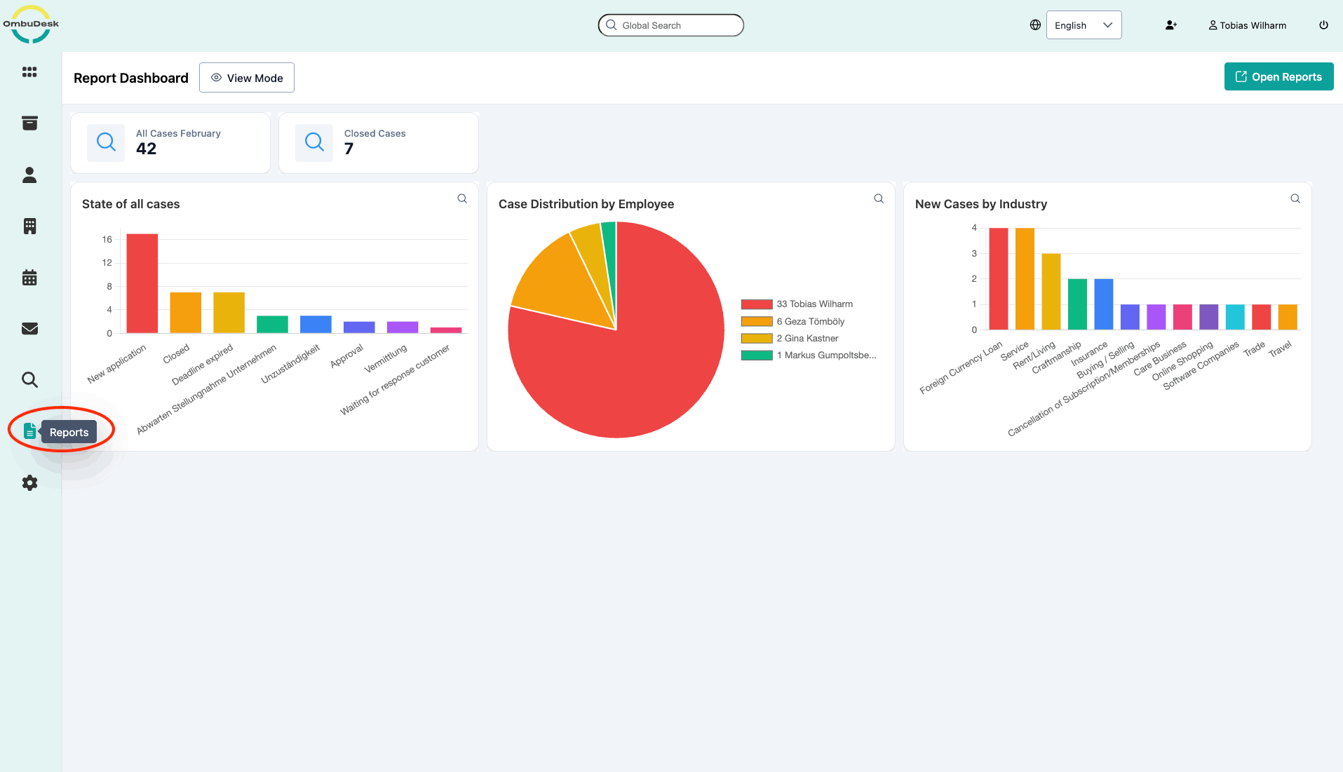 The report dashboard allows you to visualize data from your dispute resolution body with just a few clicks. This ensures that you and your team always have an overview of key performance indicators of your work.