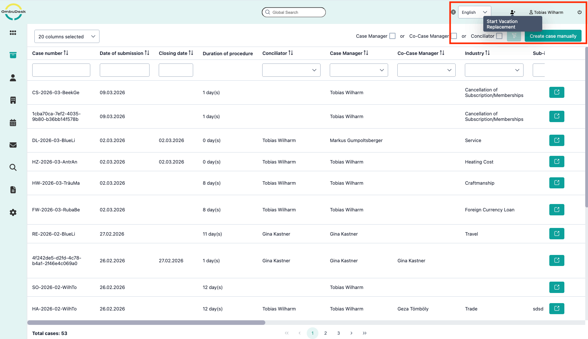 OmbuDesk offers a simple and effective way to cover for colleagues who are on vacation or sick leave. An employee takes on the role of their colleague and navigates within the view of the position they are covering. All actions are recorded by the person actually performing them, ensuring that all steps are traceable, even in the case of vacation cover.